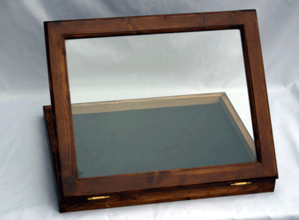 This display case can be made wall hanging at no extra cost. Just let